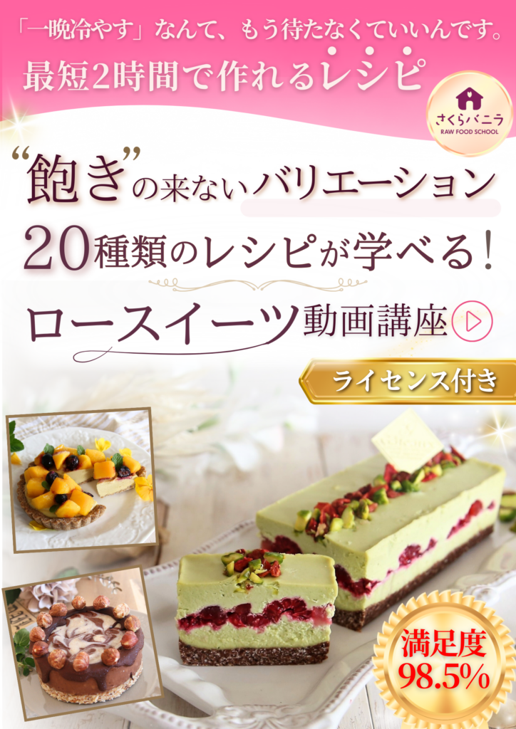 動画レッスンですので、ご予約は不要です。お申し込み完了後すぐに、お好きな時間にお好きなロースイーツをお作りいただけます。
