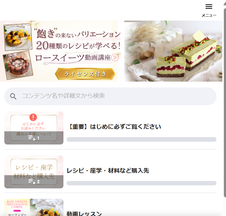 ご自身のタイミングでスマホやPCで動画とレシピを見ながら、ロースイーツ作りがスタートできます。