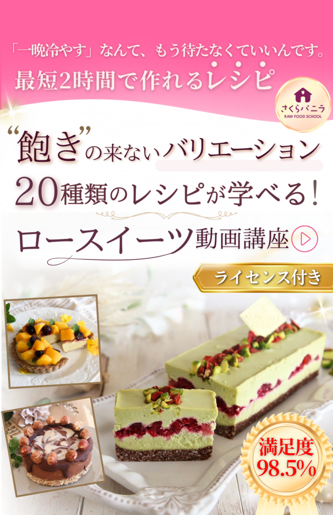 動画レッスンですので、ご予約は不要です。お申し込み完了後すぐに、お好きな時間にお好きなロースイーツをお作りいただけます。